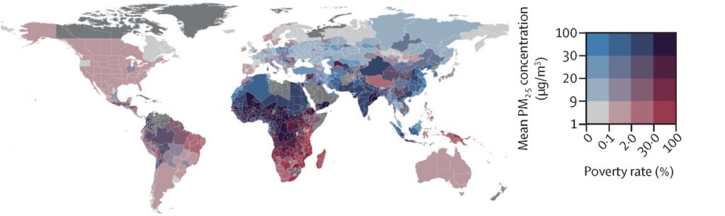 South Asia, Africa and Middle East are most affected by air pollution and it’s clear that the poorest areas of the world has the highest exposure to particulate matter.5 In wealthier areas, regulations have been put in place to successfully reduce the exposure of air pollution. A third of the global deaths due to air pollution occur in Asia,2 where the population are exposed to high levels of particulate matter coming from combustion of coal and biomasses. About 3.2 million people a year die prematurely from burning biomasses to heat homes and cook food, largest burden falling on women and children.6 Reducing sources of indoor and outdoor pollution, e.g. by replacing open-fire cooking with clean stoves, would not only significantly impact health and well being, but also reduce emissions contributing to climate change.